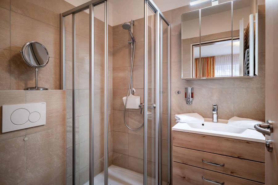 Badezimmer: Dusche, WC, Haartrockner, Toilettenpapier (Bad im Zimmer)